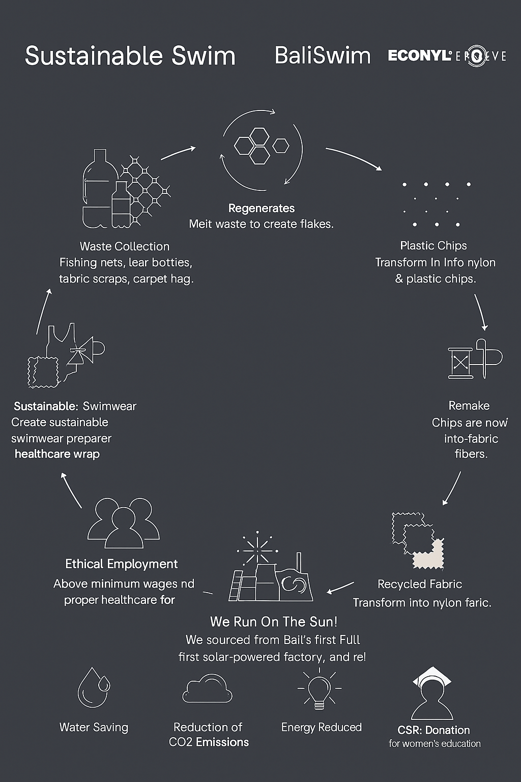 We focus on sustainability wherever possible at every given chance in our Company. Our suits are made from 78% recycled ocean waste and fish nets with 22% elastane to ensure durability.